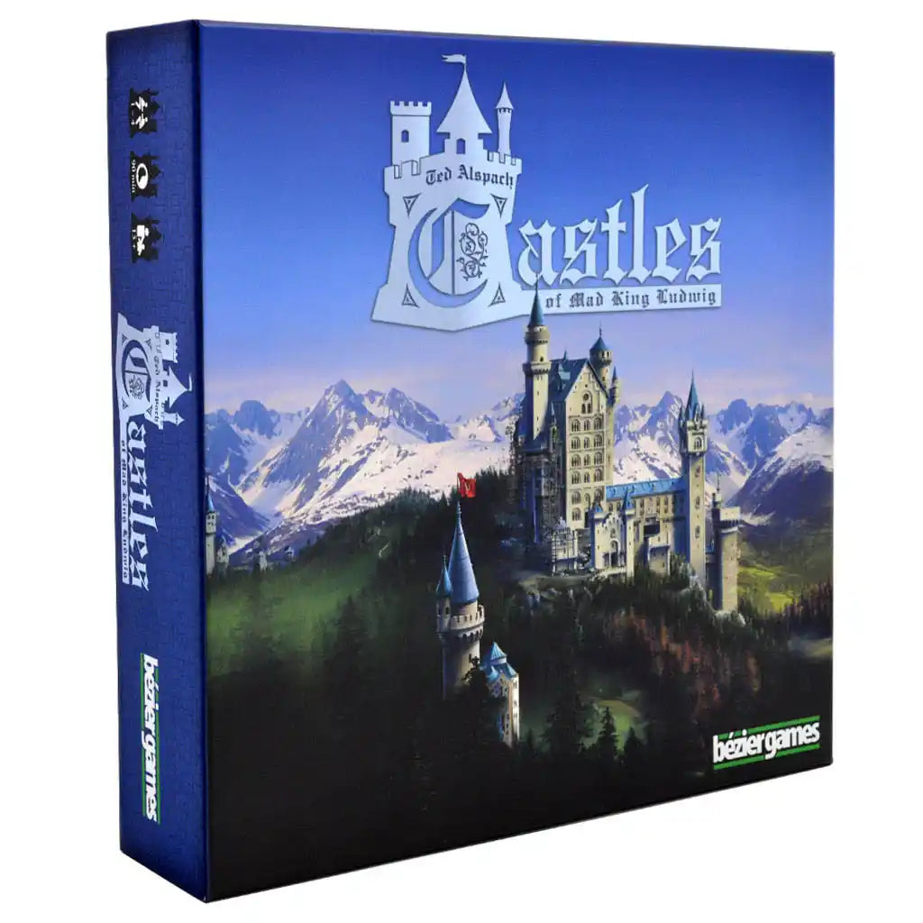 In the tile-laying game Castles of Mad King Ludwig, players are tasked with building an amazing, extravagant castle for King Ludwig II of Bavaria...one room at a time. You see, the King loves castles, having built Neuschwanstein (the castle that inspired the Disney theme park castles) and others, but now he's commissioned you to build the biggest, best castle ever — subject, of course, to his ever-changing whims. Each player acts as a building contractor who is adding rooms to the castle he's building while also selling his services to other players.
