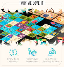 Then, place one of your seven flora or fauna tokens on the card you’ve just played. These tokens score based on their surroundings–for example, the pigehorse scores better adjacent to a longer coastline.