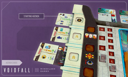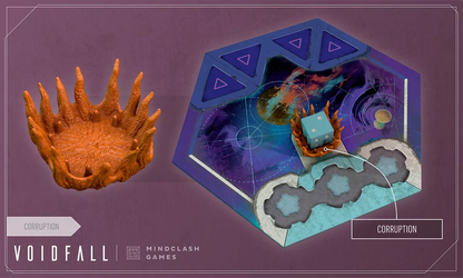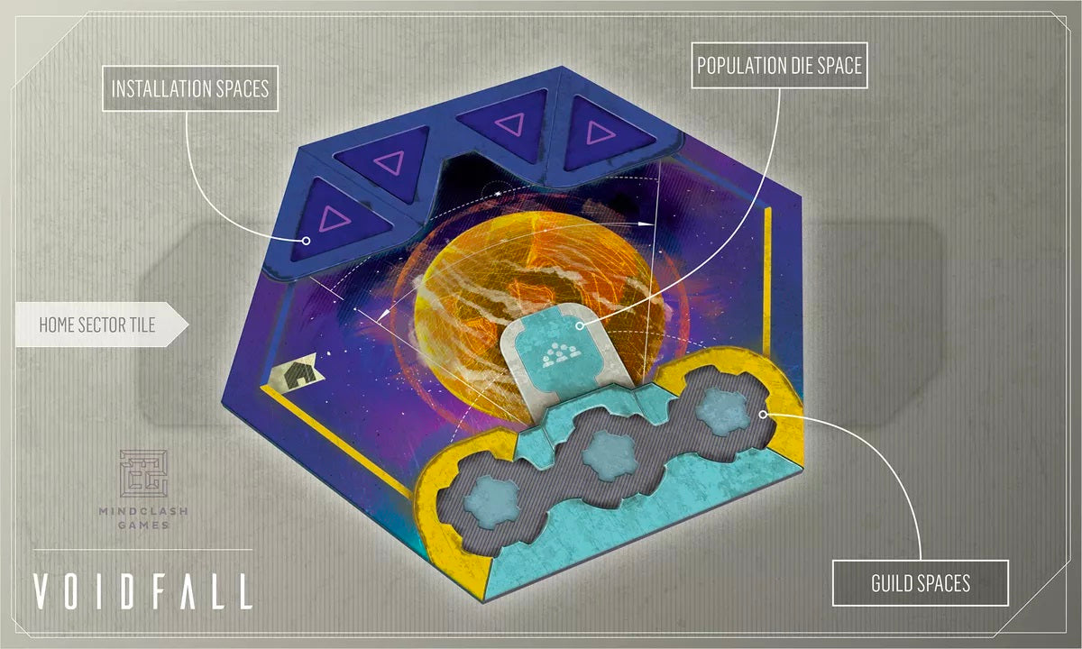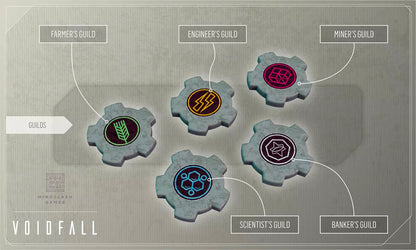 Voidfall is a space 4X game that brings the genre to Euro enthusiasts' tables. It combines the tension, player interaction, and deep empire customization of the 4X genre with the resource management, tight decisions, and minimum-luck gameplay of an economic Euro. Win by pushing back the Voidborn in the solo/coop mode, or by overcoming your rivals' influence in restoring the Domineum in the competitive mode — both using the same rule set and game system. Variability is ensured not only by multiple playable houses with their own strengths and weaknesses, but also by many different map set-ups for all game modes.